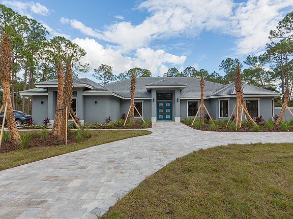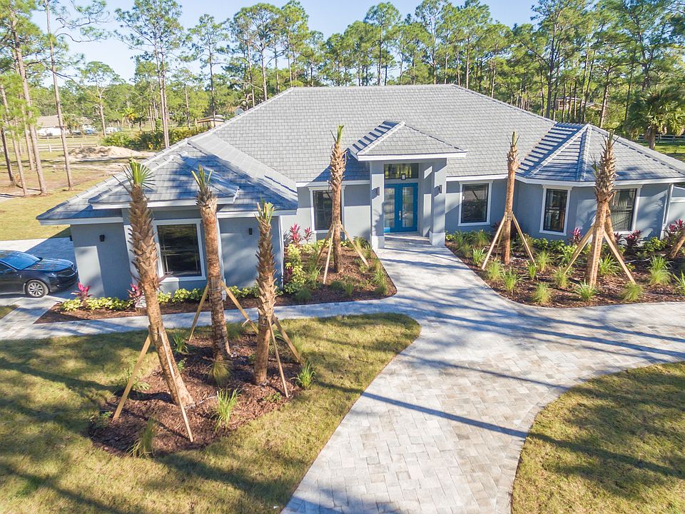 Outstanding NEW CONSTRUCTION in the quiet Caloosa Equestrian Community. The contemporary stylings designed to entertain from the 5 acres of property to the 850 sqft entertainment rm w/ 57 linear feet of windows and separate AC/heat so you can enjoy the outside when it's at its best or close it up to be comfortable all year round! Huge 36" polished porcelain tile. Kitchen has gorgeous 5'x9' waterfall granite island, Jenn-Air Dual Ovens, Dishwasher, Induction cook top, and drawer microwave. $10,000 Credit for your own California custom closet for his/her closets in Master Bedroom (hers is 10'x11' larger than many bedrooms!). Master bath has his/hers sinks, his/hers toilets (one with a bidet), and his/hers shower heads. Beautiful 10,000 Sqft circular paver driveway with automatic gate.