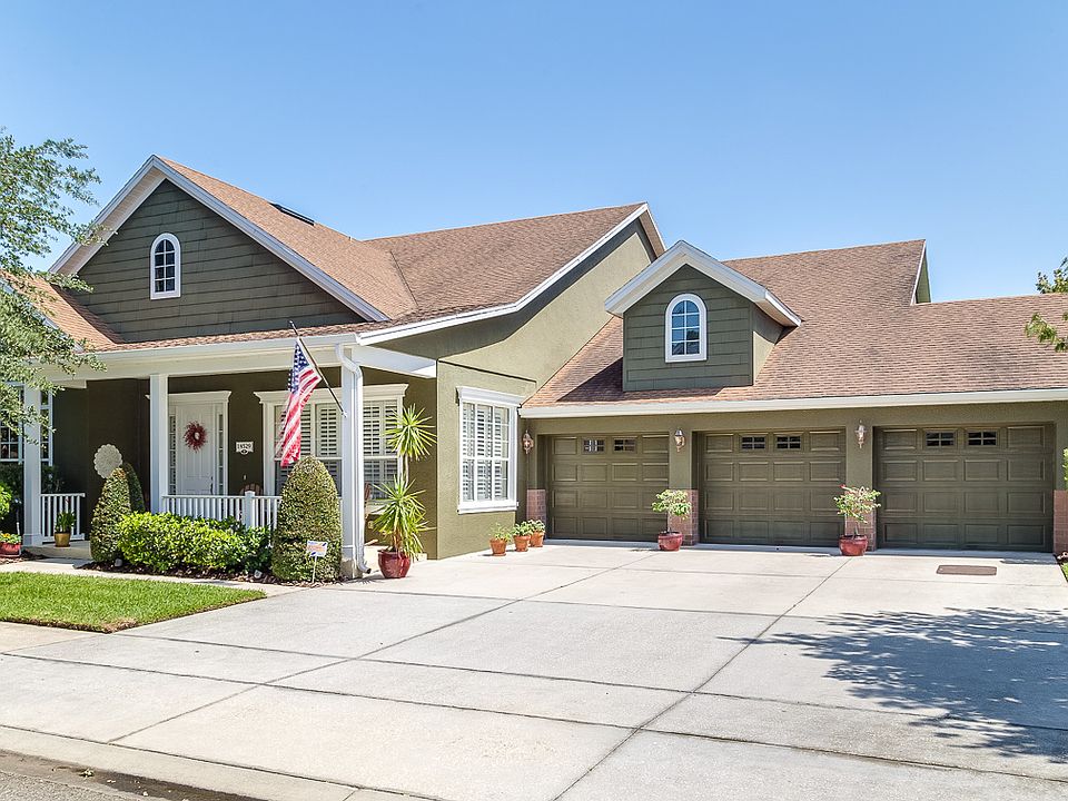 Home is on an oversized lot and has a huge three car garage with three separate doors and 3 electronic openers with remotes. You can fit 3 Chevy Suburbans in it and have room for more storage. Home has electronic air cleaner, double paned energy efficient windows and doors, water softener, Thermal Heat Wrap, Plantation shutters throughout, custom tray ceilings, Granite level 3 in bathrooms and kitchen, polished Brazilian Mesquite floors in family room, dining room and master bedroom and both walk in closets. Deluxe lighting package trhougout with switches for fans, lights and accessories as well as ceiling high hats in every room. Custom Babmoo treatment in Family Room, high end stainless steel appliances with convection range, Custom kitchen cabinetry with custom pantry, 10 foot ceilings with rounded corners, on all walls, 8 foot high interior doors, two walk in closets in the master bedroom and walk in closets in all other bedrooms. Custom Kraus heavy gage stainless sink with grid, 25x33’garage. Seller is licensed RE agent.
