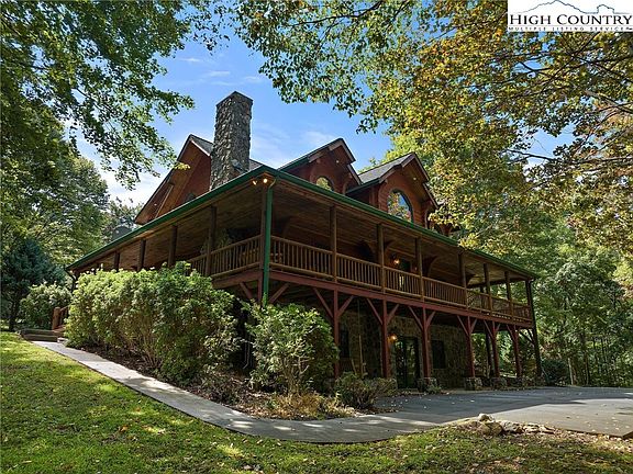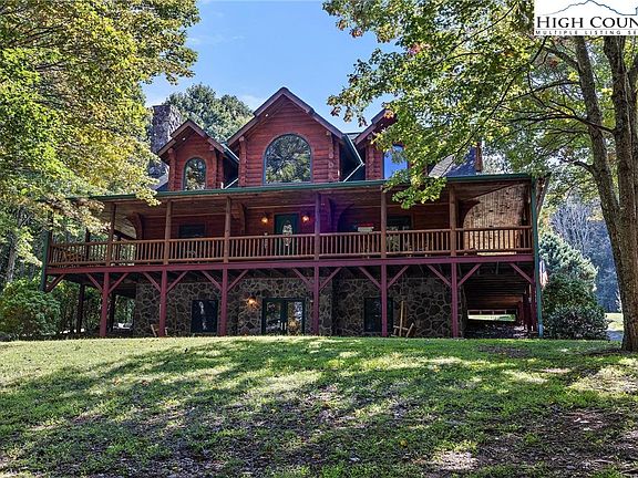 THIS IS IT!! The LOG HOME you've been looking for. Custom built with POST & BEAM accents, WRAP-AROUND PORCHES, 7 ACRES, DETACHED GARAGE, and LONG RANGE MOUNTAIN VIEWS. Best of all, you're less than 15 minutes from downtown West Jefferson, the New River, Blue Ridge Parkway, and New River State Park. The property offers 7 acres of useable land, both cleared and wooded, nestled within over 100 acres of farmland preservation land. An oversized 2 car detached garage/workshop offers plenty of room for car, motorcycle, or ATV storage. Inside the home, the entire upstairs could be used as a primary bedroom suite. Downstairs features 2 bedrooms, a game room that walks out to the patio, utility room, full bath, and a massive walk-in closet for storage or to use as an "Owner's Closet." While never used as a rental, this property would be an ideal VACATION RENTAL that could sleep 10+ people. Outdoors lovers will enjoy the over 1,700 square feet of covered porches & decks. LOCATED 2 hours from Charlotte, 1.5 Hours to the Triad, and 3 hours to Raleigh. If you enjoy hiking or biking, the BLUE RIDGE PARKWAY is right down the road. Access to the New River for fishing or kayaking is less than 10 minutes from your front door. YOUR DREAM MOUNTAIN HOME awaits you here in popular ASHE COUNTY, NC. The gated entry for the 10 home community offers plenty of privacy and peace of mind. The HVAC and Water Heater have recently been replaced and upgraded. You won't have to worry about any exterior maintenance, the entire home has recently been hand-sanded, stained, and sealed. Make sure to check out the 2 VIRTUAL TOURS and FLOOR PLANS available upon request. SHOWN BY APPOINTMENT ONLY, NO DRIVE-BYS. Don't let this unique opportunity pass you by.