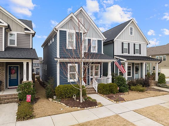 Charming Craftsman style home in the heart of Wendell Falls where location & lifestyle effortlessly meet. Enjoy miles of trails, open space, parks, pool, fitness facility, and more. This 3 BR home features a rocking chair front porch, open bright layout w/ main level Eng. HDWDs, plantation shutters, desirable 1st Fl. Master Suite, and Pocket Office space. Beautiful Kitchen boasts Granite counters & center island. Upgraded rear deck is perfect for entertaining. Double parking pad, fenced yard, and more!