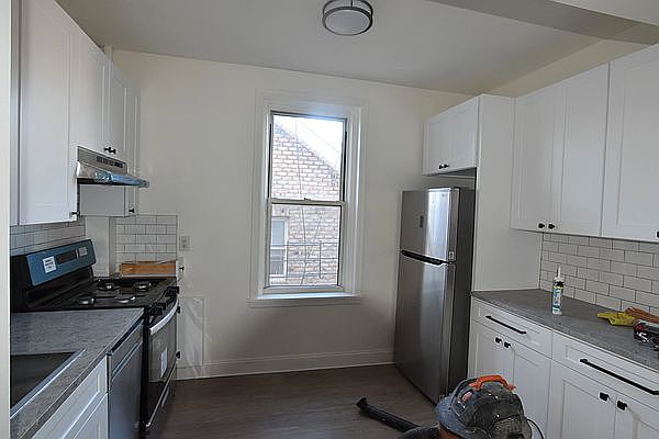 Renovated specious 1 Bedroom apartment located in a pre-war building . This apartment has been fully renovated. Features spacious eat-in kitchen with new cabinetry plus stainless steel appliances. Kitchen has large pantry and newly installed laminated floors.
