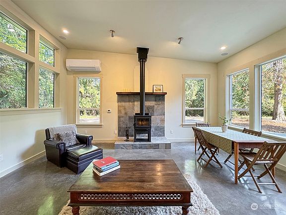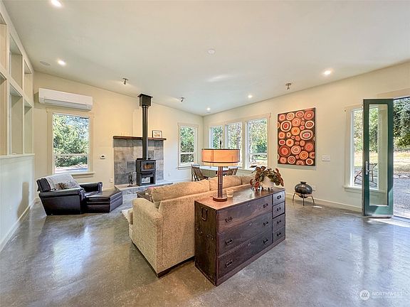 Constructed with a deep commitment to environmental stewardship, this creation utilizes natural materials and prioritizes energy efficiency, reflecting the builder and artist's dedication to sustainability. This home boasts a variety of eco-friendly features such as partial earth sheltering, concrete floors with radiant heating, a ductless heat pump, and a wood stove for efficient temperature control. Situated on a private 0.87 acre parcel with abundant wildlife and birds. Room for a garage, shop or guest house (septic will support 1 more bedroom). Located 1 mile to the Freshwater Bay public boat launch for the best fishing and kayaking. Minutes to Striped Peak, the Olympic Discovery Trail Adventure Route; Crescent Beach and Lake Crescent.