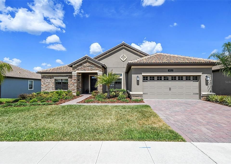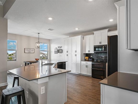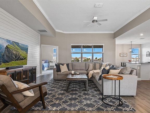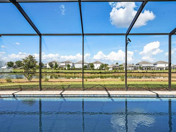 On rare occasions, a house becomes available so special it sets a new standard in the community. Behold this 4800+ square foot modern oasis of style, taste and luxury. The St. Andrews Grande is is a 2-level home with a walk-out basement located in The Country Club (NO SHORT TERM RENTALS). The main level features a FIRST FLOOR PRIMARY BEDROOM, an UPGRADED KITCHEN with additional cabinetry and designer touches like shiplap accent walls, matteblack metal lighting, dark stainless appliances, quartz counters and wood-look tile. On this level are two other bedrooms and a bath on the opposite side of the house from the primary as well as a dining area and flexible space currently used as an office. Shift out to the BALCONY with sweeping views of the 16th hole, lake and lighted fountain. Heading downstairs to the walk-out basement reveals two additional bedrooms and a bath as well as a huge recreation room, kitchen/bar and flex space. From this level, walk out to a gorgeous CUSTOM WET-EDGE SALTWATER POOL. Feel free to set the pool temp at a womb-like 90 degrees since electricity to the entire house is mostly provided by 100% OWNED Tesla SOLAR roof panels. ChampionsGate Country Club is a phenomenal community with three amenity centers available for use. HOA includes GOLF membership, pools, lazy river, tennis courts, pickle ball, restaurants, bars, planned activities and golf/tennis/pickle ball leagues. The HOA also includes lawn maintenance, high speed internet, cable and trash. This is a community where you can enjoy your best life, make friends and enjoy all central Florida has to offer. Choose to, "Live like a Champion"!
