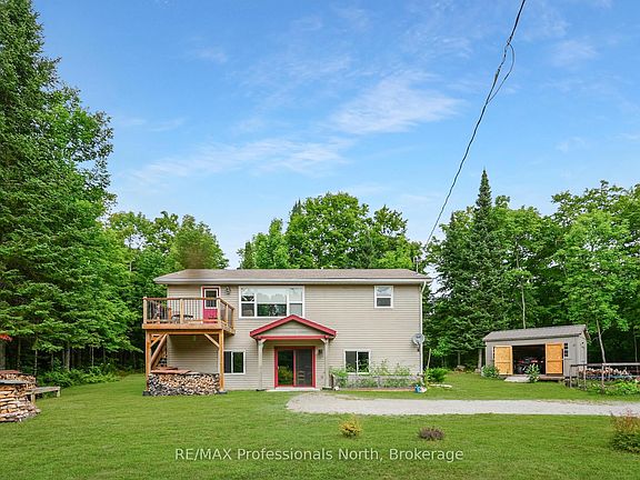 Imagine your own acreage with trails for skiing, snowshoeing and hiking, all out your back door. This 3 bedroom, 2 bath home has everything you are looking for. 30 acres of pristine forest with a scenic marsh, lovingly called "The Meadow". The forest is part of a forest management plan to reduce property taxes. The home is immaculate and extremely well maintained with several upgrades over the past six years. You will love the ground level walk-in to the rec room with high ceilings, a cozy WETT certified woodstove, and combined washroom/laundry. The upper level has two decks for entry and for barbecuing or just relaxing with your morning coffee. Check out the kitchen with updated appliances and an island with pot drawers for extra storage. The driveway has room for all your company, and a fabulous 12'x16' shed is great for toys, storage or a workshop. Come walk the trails, breathe, and reconnect with the outdoors. Discover the adorable campsite/bonfire pit at the marsh - a great place to relax, and in the Winter months you can ski or snowshoe across the meadow to a beautiful forest on the other side. You are 15 minutes from Haliburton Village and all that The Highlands has to offer. Great restaurants, shopping and festivities year-round.