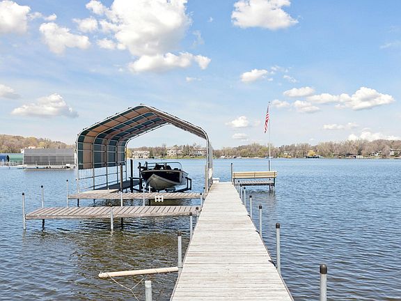 Nestled on the picturesque southern side of Forest Lake Bay on Lake Minnetonka, this Orono residence offers breathtaking views of the water, four bedrooms, four bathrooms, an impressive six garage stalls & 80 feet of pristine lakeshore. Step inside and immerse yourself in a delightful dock-themed walkout level, complete with specialty lighting, hardware, and a whimsical porthole window to the screened-in porch, featuring a charming wet bar. Explore the hidden wine cellar concealed behind built-in bookshelves, adding an element of surprise and sophistication to your home. Convenience meets luxury with laundry facilities on both the upper level and the walkout level, ensuring effortless living. Located just a short drive or boat ride away from the renowned Lord Fletcher's, this home offers the perfect blend of tranquility and accessibility to amenities. Don't miss your chance to experience the epitome of lakeside living. Schedule your viewing today and embark on a journey to waterfront paradise!