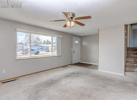 This cozy yet open tri-level home sits on a huge corner lot with great mountain views. The family room offers plenty of space and an attractive brick fire place... just in time to entertain the family for the holidays! Fresh paint throughout the entire house including the garage. Roof replaced in Oct. 2018. Large, well-kept backyard lined with lilacs. Move In Ready and PRICED TO SELL!!! Located just minutes from Ft. Carson, shopping centers, restaurants and schools. 6 Zone auto sprinkler system