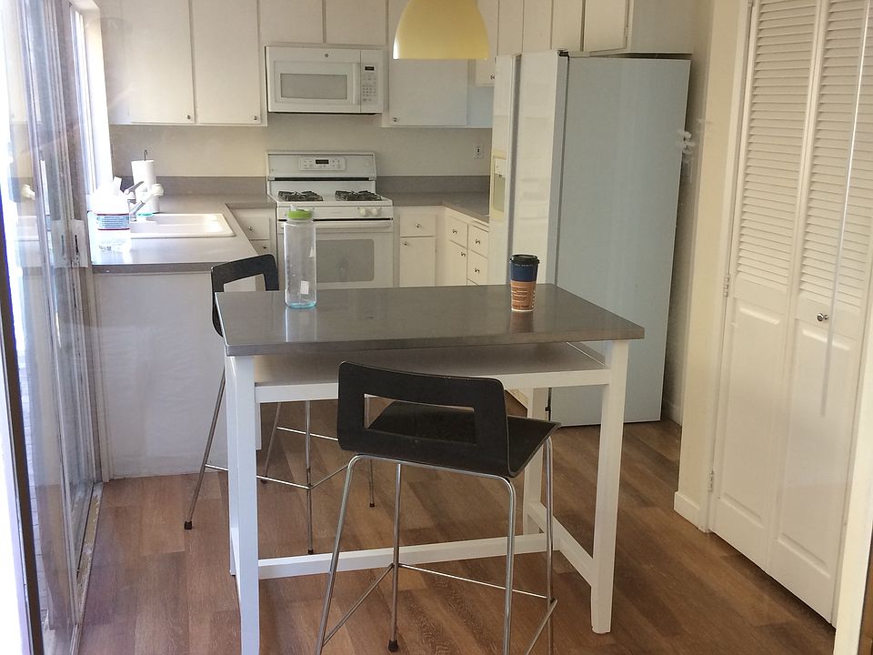 House on the water . Three bedrooms two bathrooms and laundry room upstairs. Two large living rooms (one could be fourth bedroom) eat in kitchen , dining room and bathroom downstairs. Private dock for backyard paddle boarding . Large park for kids across the street. Tennis court , basketball , hot tub & pool.