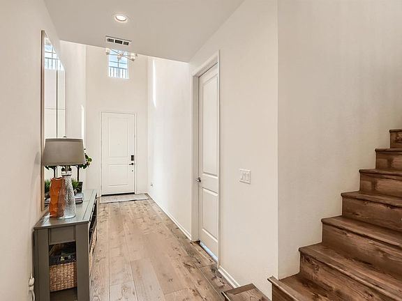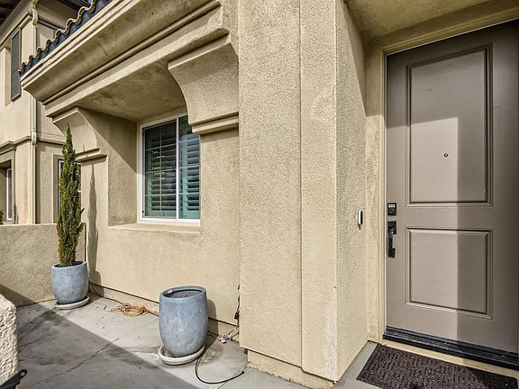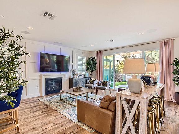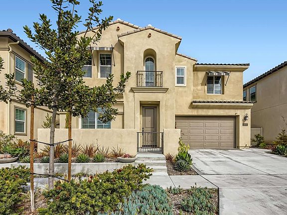 Welcome to your dream home located in the Village of Montecito in Otay Ranch. Come inside and you will notice high ceilings leading directly to the open concept family room and kitchen featuring stainless steel appliances, quartz countertops, an oversized island, and a walk-in pantry. The kitchen flows directly into the family room featuring a fireplace, in-ceiling surround sound, and a wet bar making it perfect for entertaining. On the first floor is an en-suite bedroom w/ attached bathroom and additional half bathroom making it ideal for hosting guests. Luxury vinyl plank flooring can be found throughout the first floor, laundry room, and upstairs bathrooms, while the loft and upstairs bedrooms are carpeted. Upstairs you'll find the remaining 3 bedrooms, 2 bathrooms, spacious loft that can be converted to a 5th bedroom, and a laundry room. The primary bedroom with en-suite bathroom is the perfect retreat featuring dual sinks and a massive walk-in closet. Other features include solar panels, shutters, A/C, tankless water heater, and an oversized 2-car garage for extra storage. The massive sliding doors illuminate the kitchen and family room which lead to the beautifully crafted backyard that features an extra large space due to strategically placed retaining walls. From the backyard enjoy music from your satellite speakers, pergola, drought-tolerant landscaping, and vinyl fencing for a private experience. This 2019 built home is located just a short distance to highly rated schools and has a low HOA with resort-style amenities like pools, spas, a gym, sport courts, parks and playgrounds. Located near hospitals, shopping, and eateries makes this the perfect home.