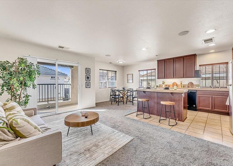 Discover the perfect blend of comfort and style in this charming 2-bedroom, 2-bathroom condo in Otay Ranch’s desirable Monet Complex. Newly painted and thoughtfully designed, this home invites you upstairs to an open-concept living space where the living room, dining area, and kitchen flow together seamlessly, ideal for both relaxation and entertaining. The kitchen features a large island with barstool seating, while the living room offers surround sound and access to a private balcony for outdoor enjoyment. Down the hallway, you’ll find a dedicated laundry closet with a newer stacked washer and dryer, a hallway bathroom, and the secondary bedroom. The spacious primary bedroom awaits at the end of the hall, complete with an en-suite bathroom for ultimate privacy. This condo also includes A/C to keep you cool, an unassigned permitted parking space, and an attached single-car garage with overhead storage and a convenient pulley system. Residents of the Monet Complex enjoy access to outstanding HOA amenities, including a picnic area, playgrounds, parks, sport courts, and a community pool. With proximity to the Otay Ranch Mall, popular restaurants, shopping, and highly-rated schools, this home presents an opportunity you won’t want to miss.