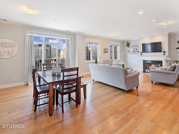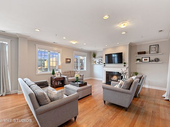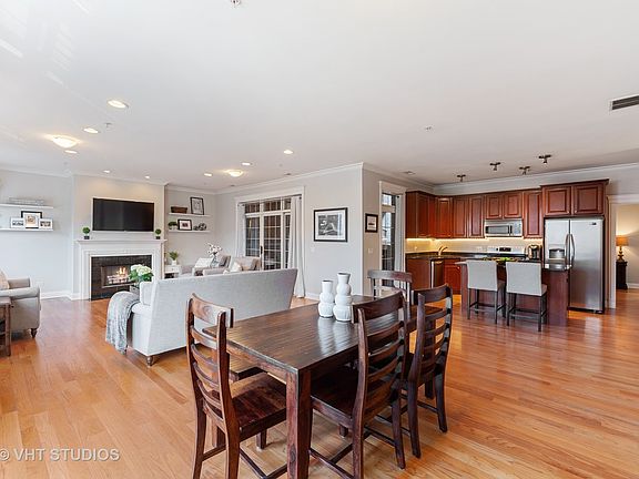 Spacious condo in Southport Corridor with incredible outdoor space in brick elevator bldg. Extra-wide, open concept floorplan with hardwood floors throughout and wired for smart home tech. Bright living/dining has wood-burning fireplace and sliding glass door to amazing 470 sq ft back deck. Partially covered deck can be screened in for nights on the large sectional couch with TV, & partially uncovered with turf, grill and planters. Chef's kitchen has stainless appl, granite counters, and island. Master bed on quiet backside of the home has prof org walk-in closet & attached bath w/ double vanity, marble tile, whirlpool tub, and sep glass door shower. Split layout to second bed w/ nice natural light from a large window & second full bath has marble tile. Side-by-side W/D with storage space and wide foyer with coat closet. One attached garage space with storage in front and one exterior pkg space incl. Walk to everything - restaurants, shops, nightlife, public transit, & Blaine School.