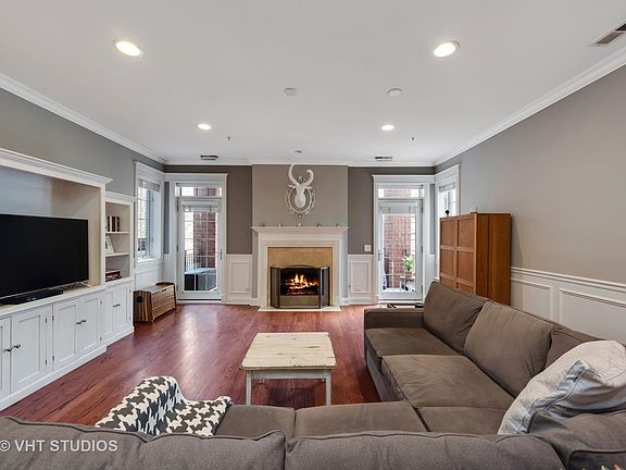Welcome home to this wonderful 2 bed / 2 bath unit in a boutique elevator building steps from the Southport Corridor! This unit has a desirable split floor plan, generous room sizes and a quiet location away from Irving Park Rd. The main living area is wide, bright & open with separate dining and living areas along with access to a private balcony. The kitchen features granite countertops, stainless steel appliances and clean white cabinetry. The master suite has an en suite bath with double vanity, separate shower & whirlpool tub and natural stone finishes. Large walk-in closet rounds out the master suite space. Laundry room with side-by-side washer/dryer also provides additional storage. Other notable features include hardwood floors throughout, crown molding, wainscoting and wood burning fireplace. One attached heated garage parking spot with additional space for storage! Located in the coveted Blaine school district and walkable to numerous dining, shopping and nightlife options as well as CTA transit stops.