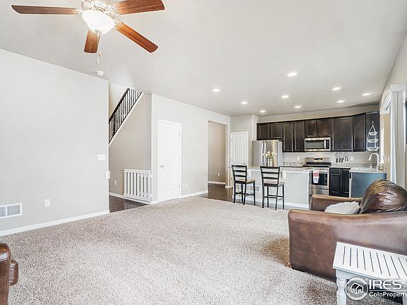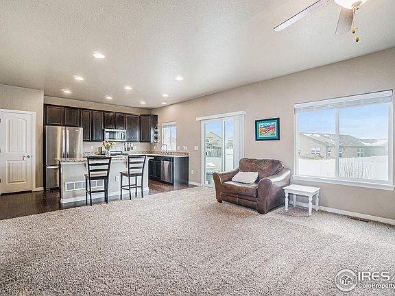 No Money Down USDA Loan eligible! Spacious and immaculate 2 Story, 5 Bed, 3 1/2 Bath home. Great for entertaining with open floor concept, eat-in Kitchen Island with granite counters throughout, SS appliances including gas range/oven, wood floors, formal dining room, 4 Bedrooms 2 baths up, finished basement with rec room, bedroom and bath, 3 car tandem garage, full fenced back yard and back patio and front covered porch. No HOA (but does have covenants). Community has a park and is any easy commute to Hwy 287 or I-25. TPC Golf Course and the Golf Course Amenities and shopping is nearby. Must See.