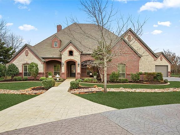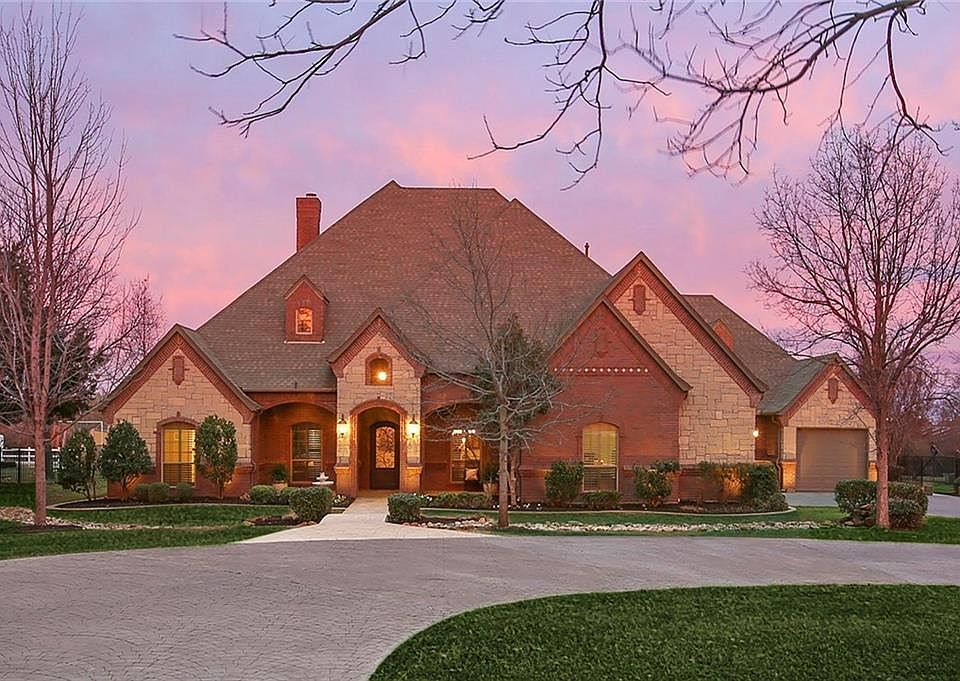 BEAUTIFUL HOME SITUATED ON 1.1 ACRE IN THE HEART OF AWARD WINNING KELLER TEXAS! The moment you drive up, charming details are evident from the stamped concrete circle drive, walkways and covered porches, to mature trees and landscaping. Step inside to custom finishes of hand scraped hardwoods, rich cabinetry and wood moldings, arches, barrel ceiling, granite counters & a spacious open floor plan with ALL LIVING AND BEDROOMS DOWN, only media up. Large great room with adjacent game room, gourmet kitchen, private master, utility off master closet, outdoor living w fireplace, single car gar 26' deep & huge decked attic storage. Gorgeous sunsets seen west of home bring stunning skies of blue, orange and pink. WOWOW!