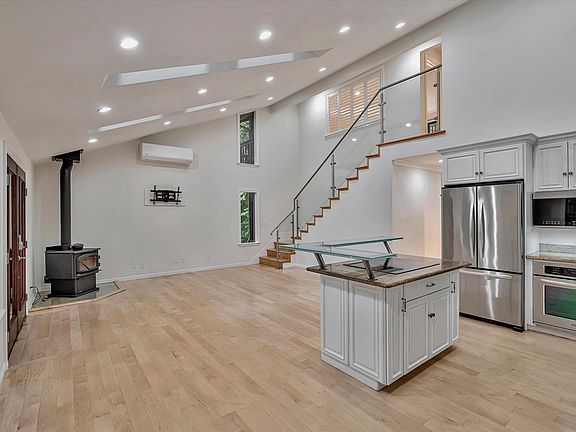 Welcome to your own private retreat in the redwoods! This completely remodeled 3 bedrooms/3-bathroom home encompasses the best of modern living. An open concept main living space with tons of skylights offers a view of the redwoods as natural light fills the space. The gourmet kitchen features stainless steel appliances, modern stone countertops, custom cabinets and an island/breakfast bar. Upstairs is a large, updated master suite with walk in closet, large jacuzzi tub, dual vanity sink and separate walk-in shower. Downstairs are two more generously sized bedrooms and full bathrooms. Enjoy the freedom and serenity of multiple outdoor patio areas/decks amongst the soaring redwood trees making this a perfect home for family or entertaining. Recent upgrades include a whole new 2 car parking area to allow access from the coveted and quiet Skylonda neighborhood (parking address: 4 Bret Harte Way, Woodside). The other driveway provides covered parking for up to 4 cars with additional parking available off of La Honda Rd. Amenities include whole-house water filtration system, new Cal EPA approved wood stove and plenty of added storage space. Located in the coveted Portola School District the house connects to a wonderful friendly neighborhood with multiple families with younger children and local neighborhood events. Conveniently located within walking distance via neighborhood trail to Alice's Restaurant, a couple minute drive to thousands of acres of open space preserves with hundreds of miles of trails and only 25 minutes to the ocean. Simple commute down to Woodside, Redwood City, Stanford and Palo Alto! Fast internet available makes this perfect for a remote work setup or the occasional commuter. Renter is responsible for all utilities. Property does have the option to utilize battery backup system (discuss with landlords). 12-month minimum.