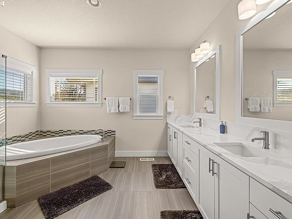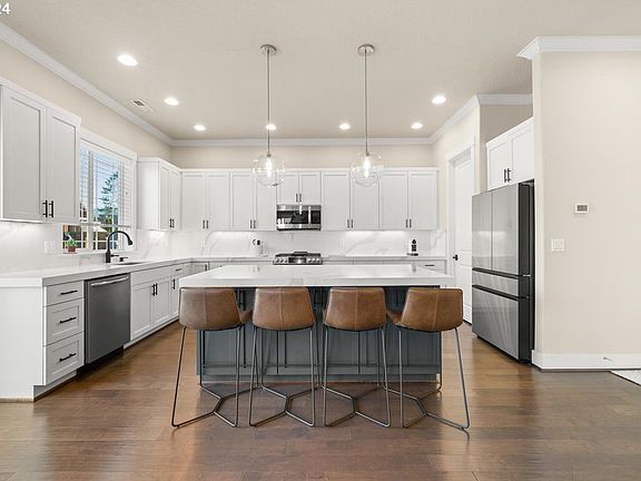 This elegant craftsman home embraces comfort and modern living in the coveted community of North Bethany. Tucked away at the end of a peaceful cul-de-sac, this home features stylish updates and fixtures. The modern gourmet kitchen features new quartz countertops, freshly painted cabinets, a walk-in pantry, a suite of stainless steel appliances, including a new 2023 refrigerator and a 2022 double oven gas range, a touchless faucet and new large sink. An expansive island, with modern pendant lights and accent color, anchors the space. The living area is accentuated with 10-foot ceilings, a warm gas fireplace and creates a seamless transition to the dining area with a new modern light fixture. The house has crown moulding and wainscot on the main, wood-wrapped windows and wood blinds throughout. Upstairs includes a sizable primary suite with a double-door entry, two new walk-in California Closets and a full ensuite bathroom, complete with soaking tub, walk-in shower, and dual vanities with new countertops, fixtures and new Kohler sinks. It's complemented by three additional spacious bedrooms, a full bathroom with bathtub and shower, and a dedicated laundry room. The bonus room adapts to your lifestyle needs, whether for entertainment or play. The outside includes a low-maintenance backyard featuring synthetic turf, a large stone patio, and an automatic sprinkler system. Trails, playground and parks are just steps from the front door. Close proximity to Bethany Creek Falls Park and resident community center, including a pool, gym. Located within a top-rated school district, Sato, Stoller, and Westview. Open house Sat & Sun 12-2 pm.