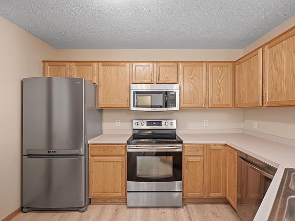 Discover comfort in this well-kept and freshly updated 2-bed, 2-bath townhome. Ready for you to move right in. Enjoy the airy feel throughout and the sleek kitchen with stainless steel appliances. Stay cozy with a lovely gas fireplace in the living space, and step out to relax on the deck. The primary bedroom includes a walk-in closet. Updated flooring and modern lighting add to the appeal. The lower level laundry also provides additional flex space for storage, hobby room, or home offfice. Conveniently close to parks, a lake, walking paths, shopping, and dining—this townhome blends comfort with convenience perfectly. Don't miss this chance!