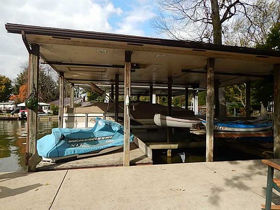 This home has everything one could want in a waterfront, and more! Plenty of parking, double covered dock with electric, huge deck, patio area @ waters' edge, 3 bedrooms, 2 baths, and more! This home has a very open floor plan and is very well taken care of. Mature shade trees. Great water view! Must see!