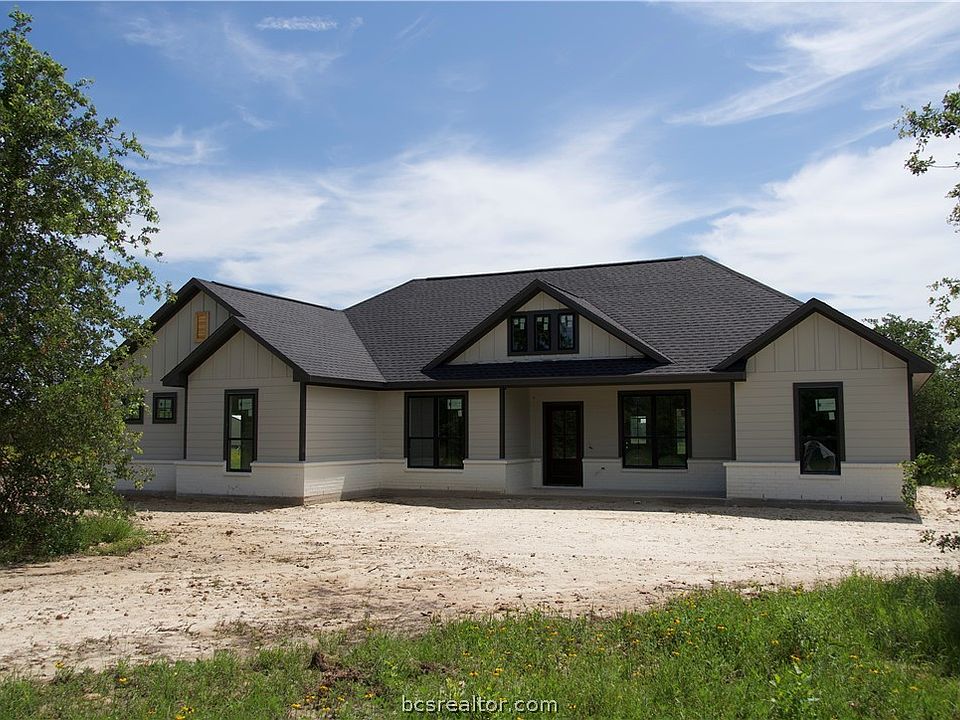 Escape the city and enjoy peaceful country living in this luxurious new construction home situated on a spacious 2 acre property located less than 25 minutes from Bryan/College Station. Inside of this stunning 3 bed, 2 bath, 1619 sf home you'll find quartz countertops, custom cabinetry, luxury vinyl plank flooring, stainless steel appliances, and many other high end features. The primary suite boasts of modern comfort with an en-suite bathroom, large walk in shower, and spacious walk-in closet. Outside, you'll have plenty of patio space to enjoy watching the neighborhood deer while simultaneously dreaming of the endless possibilities that your vast property has to offer. Quiet country nights and beautiful views await. Call today for more information!