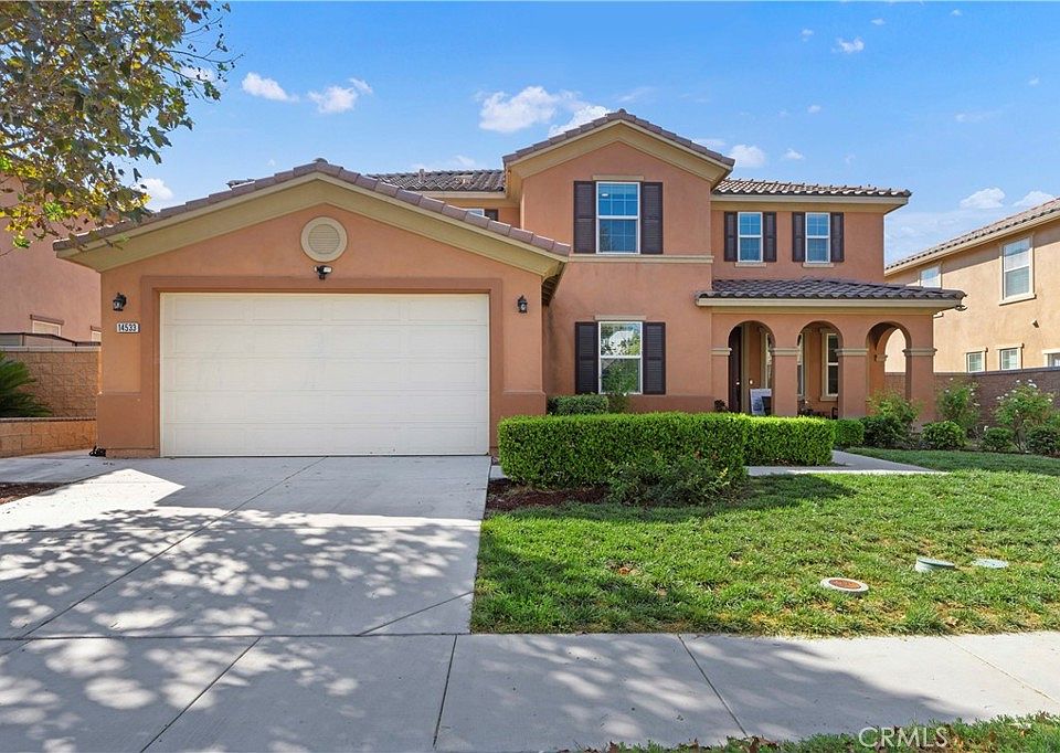 Welcome to this spacious 5 bed, 4.5 bath home in The Enclave- a highly desirable gated community! This beautiful home was built in 2013 & offers plenty of space to relax & entertain with approximately 3,600 sqft of living space on a 6,970 sqft lot. Between 2020 and 2021, the Owners upgraded the flooring, repainted interior walls, and replaced window glass throughout. Downstairs features 1 bedroom & 1 full bath, plus 1 powder room. The home boasts natural light, recessed lighting, & luxury vinyl plank flooring throughout. The living room leads into the open kitchen, which has tons of counter space, an island with seating, granite countertops, white cabinetry, & a pantry. The upstairs loft with a media niche is large & airy. Upstairs features 3 bed & 2 bath on one side, with the massive Primary Suite on the other. The primary retreat has dual closets plus a linen closet, & a huge en-suite bath with a separate tub & shower & dual sinks. The laundry room has a sink & is conveniently on the second floor. This home features paid-off solar panels. Community amenities include pool, basketball court, parks, picnic & BBQ areas, & a clubhouse.