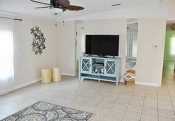 This stylishly renovated home has all the essential updates including a new A/C system, new hot water heater, new double-pane windows, new entry door, remodeled kitchen and stainless appliances and remodeled bathrooms. Other features include a large, open living room with double doors to screen room, adjacent dining room, fully-appliance kitchen with farmhouse sink, hallway with storage cabinets, master suite with private bath, guest bedroom, 2nd full bath, shed, carport and shady treed lot.