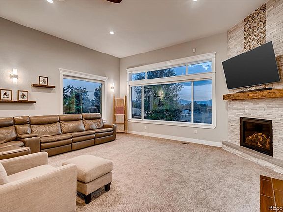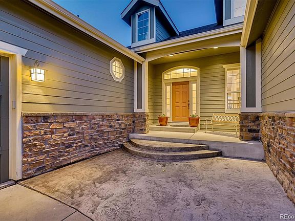 Stunning ranch floorplan with custom features, full finished basement on rare 1 acre lot with mountain views in Wildgrass! New addition featuring expansive windows with views of the mountains. Spacious, remodeled kitchen will satisfy any home chef; large island, double ovens and gas stove top. Main level features 5 1/2" Brazilian cherry pre-finished hardwoods, master bedroom, 2 secondary bedrooms, office and laundry. Fully finished basement is great for entertaining featuring a wet bar, Rec/TV area and 1/2 bath. In addition there is space for a home gym or additional sitting area and two additional bedrooms with full bath(2 sinks). Enjoy sitting out on your 1800 square-foot patio or take a dip and relax in the hot tub, all while enjoying the privacy of your 1 acre lot and Mtn views. 3 car garage, poured concrete sports court, whole house fan and more! Don't miss this one-of-a kind home. Community has a pool, clubhouse and neighborhood parks. Close to I-25, E-470 and 287.