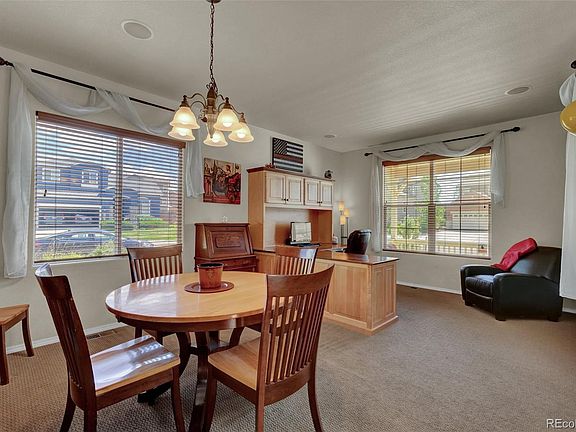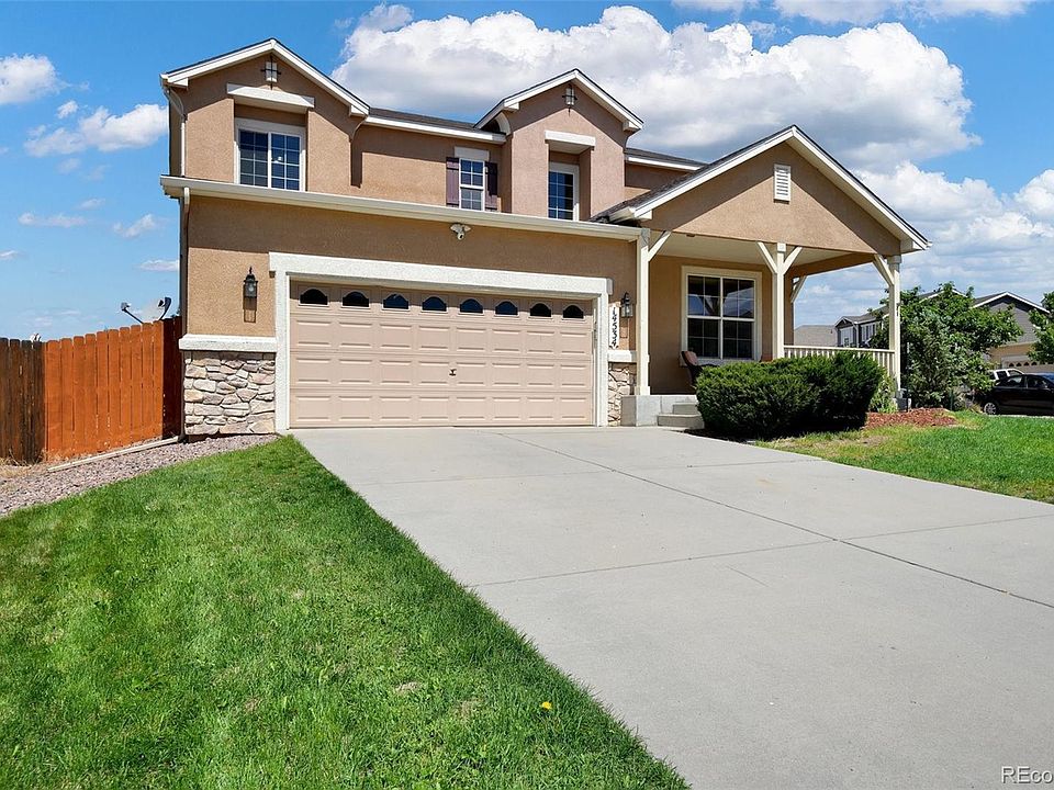 Architecturally Stunning Two-Story Former Model Home Is Nestled on a Spacious Corner Lot. The Front Porch Offers a Warm & Welcoming Space for Early Morning Coffee While Enjoying Views of the Mountain Range. This Home Offers a Lovely Formal Living & Dining Room Which Separates the Family Room by a Three-Sided Fireplace, Large Kitchen with Center Island, Great for Family Gatherings. Many Wonderful Upgrades to Include Stainless Kitchen Appliances, Maple Cabinetry, Custom Hickory Flooring & Staircase, Walnut Countertop on Island Just to Name A Few. The Upper Level Boasts a Sizable Master Ensuite with Five Piece Bath & Smartly Situated Walk-In Closet. Three Additional Bedrooms & Full Bath Complete the Upper Level. Basement Is Fully Finished and Offers Two Additional Bedrooms and Generously Size Recreation Room. Yard Is Professionally Landscaped, Fenced, Private and Ready for Backyard BBQ's & Entertaining! Additional Upgrades Include security system, audio system, holiday lighting package, A/C & humidifier. Home Is Located Within Minutes From USAFA, I-25 & CO 83 Which Offers an Easy Commutes to Denver, DTC, or Downtown Colorado Springs.