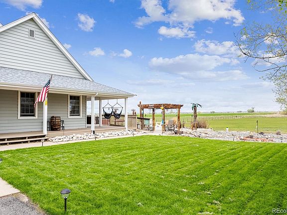Fantastic two story located on nearly 5 acres in unincorporated Adams County. Plenty of parking for all your toys, trailers, and boats. No HOA’s. The home features a highly desired main floor master suite with a private 5-piece bath and jetted tub the gorgeous kitchen has custom granite counters, a large island, and brand new stainless steel appliances. As you enter the home you are greeted by a formal living room and dining combo. The living room is highlighted by a large rock Gas fireplace. Upstairs you will find 3 additional, generously sized bedrooms and a full bathroom. The basement is fully finished with a bar, media room and massive game room. (All games and mini-fridge included) In the basement you will also find a large roughed out bonus bedroom ready for your personal touch. 1 year old outdoor grill on the huge wrap around deck, with fire-pit, patio and space to enjoy it all. Along with the oversized, two car attached garage the future homeowner will enjoy the dream 36x50 insulated heated and air conditioned workshop. The custom shop is equipped with a classic pub, large air compressor with hard lines and separate office. Workshop was recently upgraded with commercial HVAC, 500 gal propane tank and brand new 3 ton AC system. Quick access to both hwy 76 and 470. Across from Bar lake state park. Buyers will love the brand new sod, new sprinkler system and new fence for the animals and little ones to stay close and secure. Brand new to code septic system and leech field was installed last year with all new piping. Hot tub has recently had all service work done. Well is a high flow artisanal aquifer. This home has it all! From eastern horizon Sunrise views to the Mountain Sunset views.**Offering $10,000 Seller Concessions to help pay Buyer closing costs!**