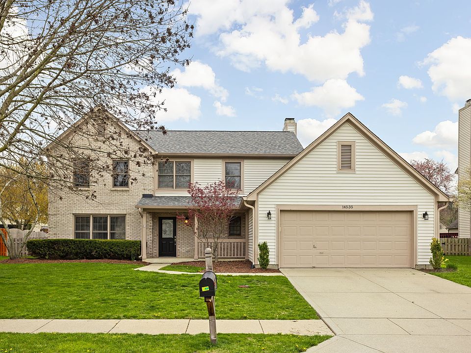 Suburban dream for 430k!! Well maintained 4bd, 2.5 spacious home nestled in Ashmore Trace, Carmel. Great curb appeal and inviting front porch. Inside, enjoy multiple living spaces: formal living room, dining room, breakfast room, family room off kitchen w/ cozy wood-burning fireplace, and sunroom. Tons of space for entertaining! Newer main level flooring and light fixtures. Updated kitchen complete w/ white cabinets, granite countertops, and stainless steel appliances. Large laundry room w/ utility sink on main. Huge owner's suite w/ vaulted ceilings, ensuite, double sink vanity, garden tub, shower and walk-in closet. Don't forget to check out the backyard! Oversized wood deck and fully fenced. Great location close to parks, trails, shopping, and restaurants--it's a steal!!