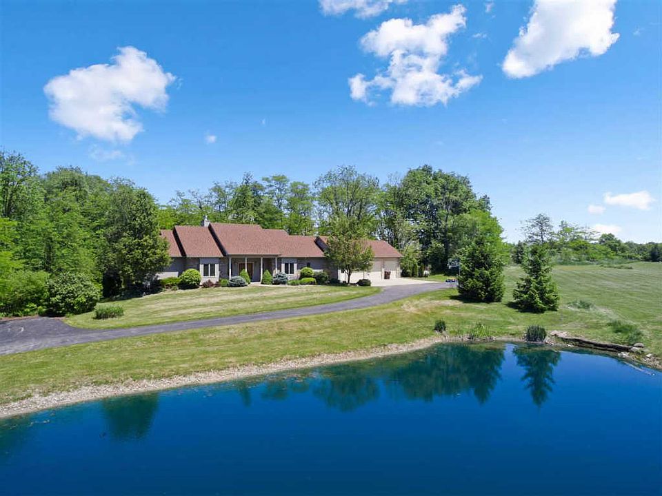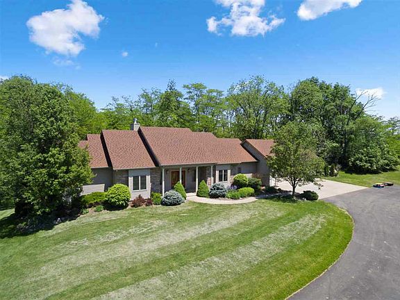 Your search is over...welcome to your new oasis! Custom built 4bd/5ba ranch (with full, finished walk-out basement) nestled on over 12 acres and located in Southwest Allen County school system. Abundant privacy with large wooded areas (with cleared paths for four wheelers), a stocked pond (hello bass and bluegill) and a sand beach. Did I mention the zip line? Fun! Gourmet kitchen showcases custom cabinetry, Garland gas range (with heat lamps), stainless steel appliances and a large island. Great room has a sweeping ceiling and large windows (love the views of the woods). Master suite features two walk-in closets, jet/garden tub, two vanities and a stand up shower. Expansive main floor laundry room has a utility sink and built-in ironing board. Two half baths, a lovely screened porch (with new screens--and more gorgeous views) and a large home office round off the main floor. Lower level has a large family room, full size bar with room for seating and two mechanical/storage rooms. Two full baths and three bedrooms are also located on the lower level. Additional amenities include a wood deck, new flooring in master and office and home is wired for security.