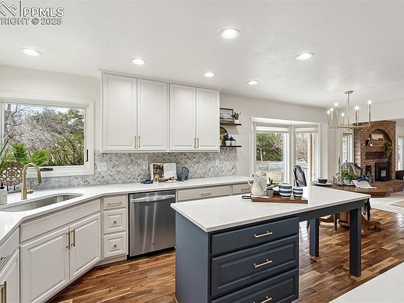 Step into inspired spaces and exceptional living with this beautifully refreshed 5 bedroom home, tucked away in a quiet cul-de-sac in Gleneagle. Situated on a stunning lot featuring an established oak grove, this property offers privacy from neighbors and boasts a ready-made vegetable or cutting garden. With too many updates to list, here are just a few: the kitchen has undergone a complete refresh & features new cabinetry, countertops and hardware. Also of note, new windows on the main level & upstairs, new garage doors & opener, fresh paint throughout, new fireplace liner and wood stove insert, updated lighting on the main level. Step into the main level where the gleaming Acacia wood floors great you at the door. The sunken front room/dining combo is bathed in natural light and leads right into the beautifully curated kitchen. The open floorplan flows into the dining nook and great room—just steps from the elevated patio & private yard. A stylish powder room and a home office with French doors & built-in bookshelves complete this level. Upstairs, the spacious primary suite invites relaxation, overlooks the private yard and welcomes the morning light. The luxurious en suite has a double shower, jetted soaking tub, brand-new counter with double sinks and natural light. Also upstairs, three additional bedrooms and a shared bath. Downstairs is a dream for the DIY enthusiast, featuring a well-lit workshop, craft room, home entertainment hub, or whatever you envision! An additional bedroom, 3/4 bath, oversized laundry room with a mud sink, abundant storage and extended counter space adds extra convenience. A solar array harnesses energy, reducing utility costs and promoting sustainability. Located in desirable D20 and with so many possibilities to make this highly livable home your own, it’s ready for your next chapter!
