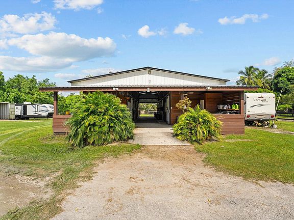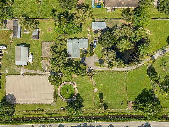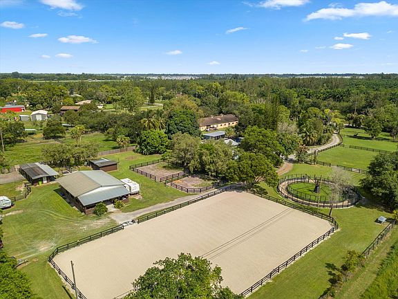 Discover the charm of this Equestrian Estate in Loxahatchee, FL! This 5-acre property features a newly roofed residence with 4 bedrooms and an attached studio apartment. The equestrian facility include 3 barns with a total of 14 stalls, a hot walker, riding arena with lights, and irrigated paddocks. There are 3 wash stalls, an air-conditioned tack and feed room, hay barn workshop, and ample storage. The gated entry ensures privacy, and a dog fence adds convenience. With impact windows installed in 2022, this property offers a perfect balance of comfort and practicality for both homeowners and their horses. Don't miss this rare opportunity to own an exceptional equestrian estate.There are 2 RV hookups and a manual transfer for a home generator. The property is also on city water.