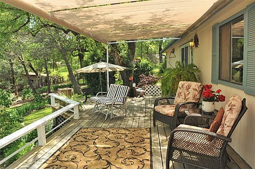 Horse Property located close to Downtown Grass Valley, this property is very unique. The single story manufactured home has bben update with wood flooring in the breakfast/dining area with wood stove and french doors leading to views of lush gardens and roaming horses.The kitchen cabinets were upgraded and Corian Counters were added plus bisque colored appliances and a breakfast bar for morning java. The living/dining area overlook the front patio with fenced garden and shrubbery for added privacy. The main bedroom is located on one side with vaulted ceilings and fireplace.The main bath has dual sinks, garden tub and separate shower all of which have been updreded. On the other side of the house are two bedrooms and a bath. The third bedroom has french doors leading to the side patio and the above ground pool area. Great laundry room located off the kitchen with nice cabinetry and dutch doors to back garden. Separate guest or studio with fireplace,kitchenette and bath would make for a great office,guest,or rental. There is a large workshop next to the 2 car carport plus a small artist studio in the back overlooking the year round pond. Bring your horses to this 2 stall barn and round pen and enjoy the many trails in the Nevada County Area. This home shows very well and worth a look!