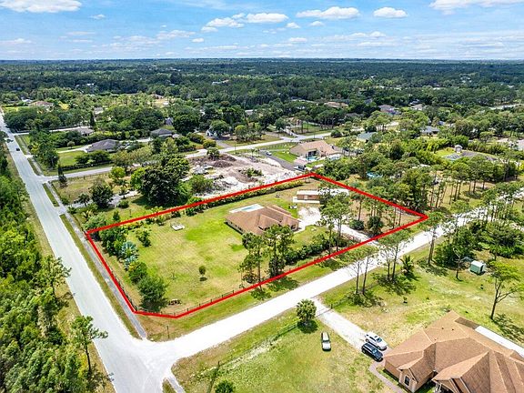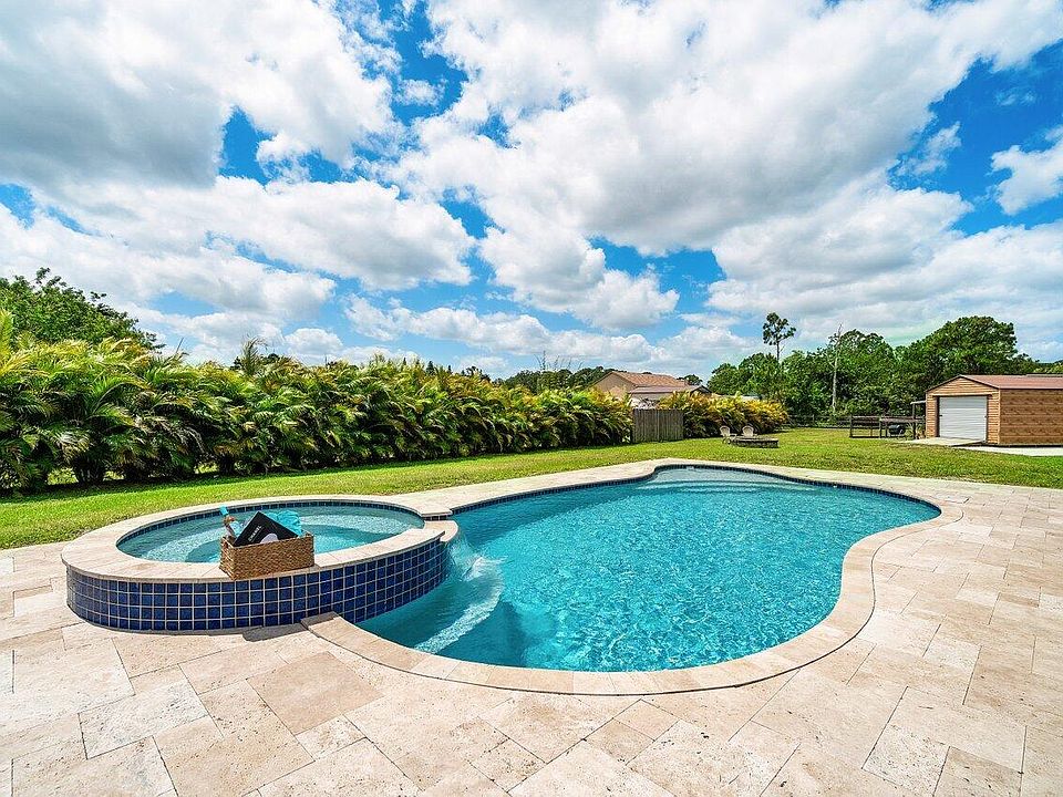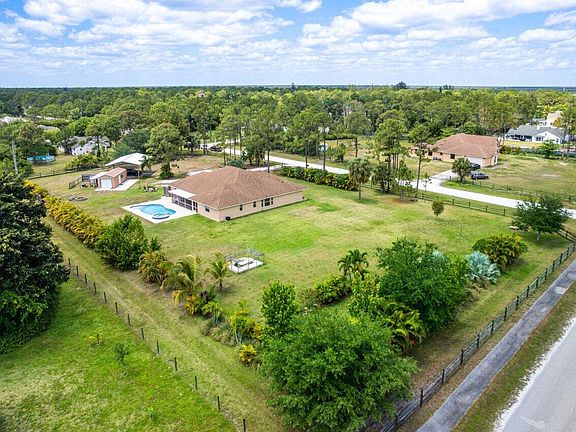 WELCOME HOME to a slice of county heaven! This VERY RARE find features; 2.19 premium acres, city water, (4) bedrooms with two master suites, plus den, (3) full baths, (2) car garage, 2019 salt water and heated pool with cascading jacuzzi, brand new 36'x24' pole barn and defines a hidden gem and where simple country living meets private resort! And it gets even better, this stunning home is located in one of the MOST sought after areas within The Acreage and tucked away on a very quite paved road and dead-end street. ENTERING the grand covered entry brings you into the double front doors, large foyer, 15' vaulted ceilings, open yet formal split floor plan, decorative columns, laminate floors throughout, pool view from virtually every room and spacious kitchen boasting; granite (CLICK) counter tops, energy efficient 2022 black stainless refrigerator and dishwasher, 42'' solid wood cabinetry, double oven, pantry, breakfast nook, bar area and lovely pass through bay window to the lanai. PASSING THROUGH you will discover outstanding features such as; oversized bedrooms, tray ceilings, beautiful chair railing and crown molding millwork, bay window, french doors, hi hat lighting, grand master suite that overlooks the pool and boasting, his and hers walk-in closets, an oversized 13'x12' master bath with 5'x6' walk-in shower, his and hers cultured marble vanities and deluxe jacuzzi tub, and a 11''x 6' under AC laundry room equipped with storage cabinetry and a convenient sink, full cabana bath and design that is simply exquisite! STEPPING OUTSIDE brings you to a private outdoor oasis perfect for relaxing, raising a family and entertaining. Features include; a grand 20'x30' screened lanai with gorgeous travertine marble flooring, sparkling pool with cascading waterfall and spectacular 25' x 45' travertine marble pool deck, 2022 pole barn that could be very easily finished into a horse barn or shop, 30 amp RV hook up, like new 12'x30' metal shed w/electric and concrete slab, plush mature landscaping, fully fenced yard, charming stone fire pit, garden area, pet or animal pen, added DOT grade fill and so much more! HELLO FASTEST INTERNET SPEED AVAILABLE & PEACE OF MIND...ATT fiber optic high-speed internet is the fastest speed available and per ATT; 100% fiber network, symmetrical speeds, unlimited internet data included, equipment fees included and no annual contract. And a freshly painted exterior, 2019 high energy efficient Rheem AC unit and handler, 2015 (50) gallon Rheem hot water heater, Brinks security system, no HOA fees and hurricane protection insurance discounts. LOCATION LOCATION LOCATION This beauty is tucked away in a superb yet quiet location with shopping and dining just around the corner and nine quaint parks with countless year-round outdoor activities such as; play grounds, picnic areas with grill pavilions, fishing, fitness trails, equestrian trails, football/baseball/Soccer fields, skate and equestrian parks, basketball/volleyball/racquetball, tennis and is located just minutes to everything one could possibly desire; Florida's Turnpike, I-95, Palm Beach international Airport, shopping, dining, arts, entertainment, world class equestrian shows and facilities, beaches, theater, golf, business and economic development, education, green living and much more! COME AND SEE why The Acreage is very sought after and take in the fresh country air and peaceful sounds of nature. Build a guesthouse, shop, chicken coop or plant a vegetable garden and bring your toys, pets or just about anything your heart desires. Come and enjoy your life away from the hustle and bustle and your evenings sitting in the jacuzzi at the stars. Run like your pants are on fire and be sure to check out the VIP buyer discounts on site!
