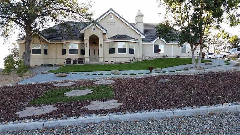 This is a beautiful home located in the Prestigious Oak View Subdivision. New Drought Tolerant Eco Friendly, Top of the line Synthetic Lawn installed in front yard Move in condition. Enjoy your days and evenings watching the beautiful view of the mountains, rolling hills and the gorgeous sunsets on 4.5 plus park like acres. This home has 3 spacious bedrooms, 2.5 bathrooms, Living room, Dining Room and Great Room with Majestic Fireplace. Extra big 3 car garage with single side Tandem. Huge basement/workshop, Very large Attic. Kitchen counter top eating area, Viking Appliances. Laundry Room. Granite thru out house. Two AC units.Solar screens, Crown moulding, and much more 3,000 gallon water tank less than 5 years old. Large covered patio, perfect for entertaining in your Park like setting home. This is a must see home!