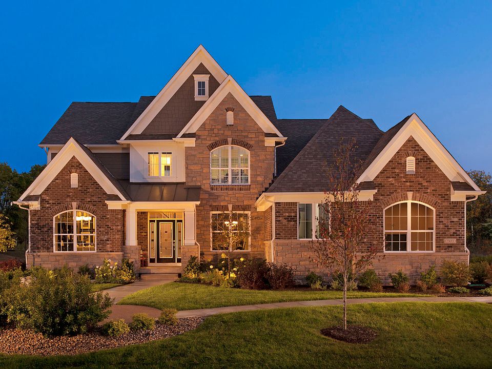 From the Estate Collection, The Southill "C" floor plan features a gourmet kitchen w/island, gas cooktop, stainless steel appliances & handstone countertops! Wood laminate flooring throughout the main floor! Custom features include decorative trim, mstr & dining rm tray ceilings, gas fireplace w/granite & built-ins in back hallway. Sun room, upstairs laundry, covered porch, fully sodded front yard., water softener rough-in & full basement w/den & exercise room! Backs to tree line/ In lawssuite.