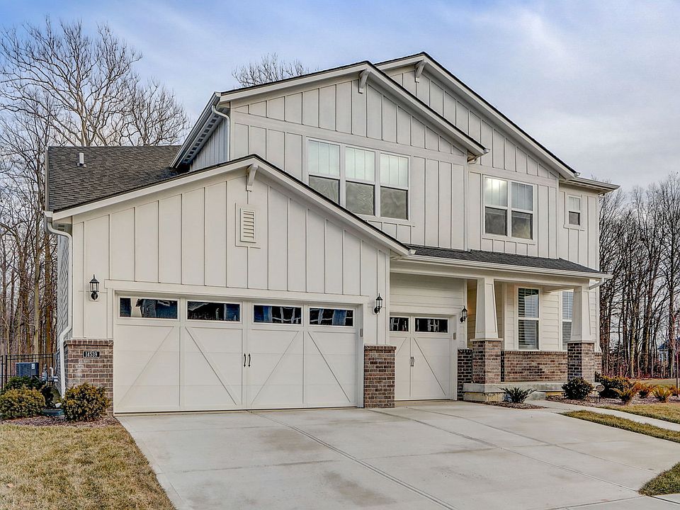 Why take the time and expense to build a brand-new home when you can have this 1-year-old, gently lived-in Pulte home? This is the Greenfield floorplan, part of the Manor series by Pulte, with almost $30,000 of finishing touches that were tastefully and lovingly selected. This gorgeous home is located in the Ambleside neighborhood of West Carmel. Main level features a great open floorplan with plantation shutters and vinyl hardwoods. There is a private large den/library space with a French door. A large living room with a lovely stacked-stone fireplace (with an incredible view of the back yard and the mature trees beyond). The kitchen and dining space are incredible as well, with the gas cooktop, built-in ovens, and lots of counter space and beautiful quartz counters. And all appliances stay, including the washer and dryer. There is also a space for planning, studying, computer work...and a mudroom, and a huge 3-car finished garage. Upstairs you have 4 large bedrooms, with 2-4 having blackout blinds. There is also an enormous loft space (Pulte's plans call it a game room or space for a 5th bedroom). The "Super Laundry" room is located on that level, too, and includes a wash sink. The primary bedroom suite is incredible with tray ceiling, plantation shutters, dual sink quartz vanity, gorgeous tiled walk-in shower, and a huge closet. The basement is already plumbed in for another full bath and ready for a 5th or 6th bedroom, as well (as you can see from the attached floorplans). The basement also offers a great space for a media/entertainment room, as well as another section that would make a great exercise or storage area (also shown in the attached plans). The back yard is fenced with a wonderful deck and a beautiful view of the wooded area beyond. Water softening system, high-efficient gas furnace, sump pump with battery backup, programmable thermostat, radon system. You will love the back yard with a view of mature trees, WOW!