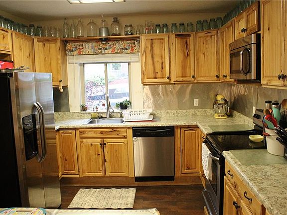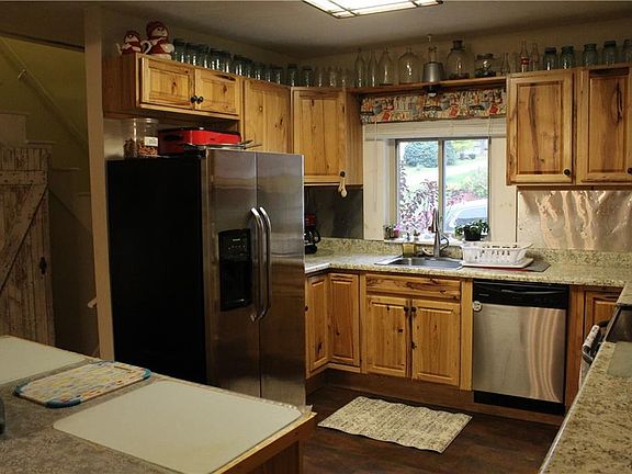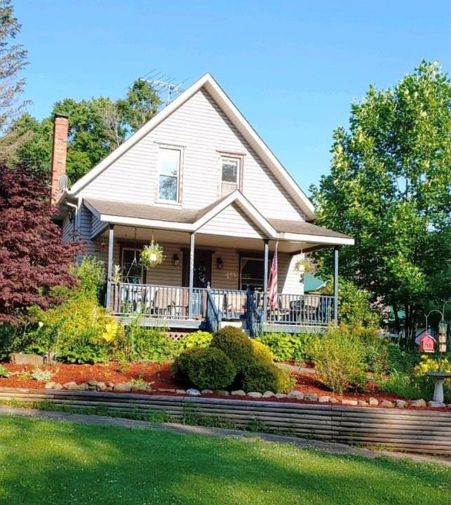 Tastefully updated 3-4 bedroom/1.5 bathroom home on approximately 1/2 acre bordering state game lands! Huge eat-in kitchen features hickory cabinets, newer appliances, trayed ceiling & bay window. Main level laundry room w/ sink. Lots of living space! Second floor features large master bedroom! Finished room in basement. Covered front porch overlooking the landscaped lawn. Natural spring in the backyard. Shed included. Vinyl double pane windows. Newer pressure tank & furnace.