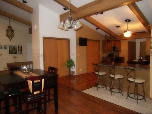 Unique, spacious, open floor plan, L-shaped cedar-brick ranch home. Private, quiet area. New 2014 roof, new heat pump 2014, and renovated kitchen 2012. New laminate, new ceramic tile throughout home. 3 large bedrooms , walk-in closets, 4 large additional closets, 3.5 baths. 17x16 kitchen open to 14x18 diningroom. Large 20x34 living room with stone fireplace, Vaulted ceilings, recessed lighting, 14x33 screened in porch with ceiling fans adjacent to large L-shaped deck. Great for parties. Deep 30x32 - 2.5 car garage. Bring your fishing gear and lawn chairs -Covered bridge, small flowing creek adjacent to property. Home is uniquely constructed with the best of materials, supported by 16" I-beams. Lots of wildlife to watch. Full basement with wood burning fireplace and has an additional entry/exit way. Ideal for hosting marshmallow roasts around the fireplace in the basement after ice skating and sledding.. Concrete driveway with curbed roads. History- home and its grounds was once used for a private wedding.. Ideal wooded area location.