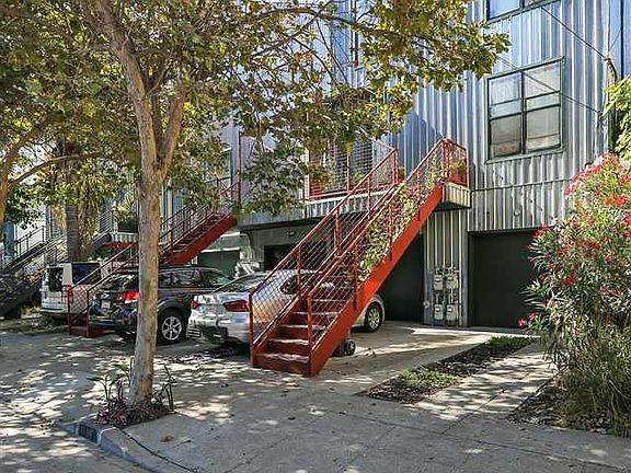 This modern 1 bedroom/ 1 bathroom hide-a-way in the trendy west Oakland neighborhood of Dogtown will definitely impress you with its sleek lines and tranquil setting. As you approach the condo, the stylish design of the corrugated metal exterior invites you in. It has an open floor plan that offers a sense of spaciousness and sliding glass doors that open to the back patio providing easy access to a cozy outdoor garden area. There is also an attached 1 car garage with a section that can be used as a home office, as well as a driveway parking space for a total of two off-street parking spaces. There is radiant heating underneath paint-ed concrete floors, modern light fixtures and recessed lighting in the living room. Laundry can be done from the comfort of home with a stackable wash-er/dryer unit. This unit is near Emeryville shops and restaurants and has easy access to freeways and transit corridors.