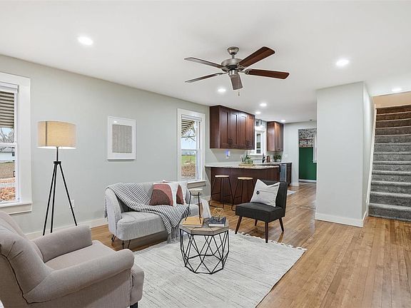 Charming 2.92-acre property offering quiet country living! This cozy farmhouse sits on a spacious, tree-shaded lot with wide-open rural views. Beautifully updated kitchen featuring quarter-sawn oak cabinetry with soft-close doors and drawers, granite countertops, and stainless-steel appliances. The space includes a striking hammered copper farmhouse sink, abundant storage, and a bright window overlooking the yard. An open layout connects seamlessly to the living area, showcasing warm hardwood floors and modern lighting—perfect for everyday living and entertaining. Main level primary bedroom with private bathroom featuring a double-sink granite vanity, spacious walk-in closet, oversized tile shower with bench, and a separate soaking tub with classic subway tile surround. Home features a front porch with large windows, warm hardwood floors, and classic design. Main level laundry room for added convince. Upstairs you will find a cozy bedroom with new carpet and paint, plus a nicely redone bathroom with a stylish vanity and subway-tile tub/shower. 2 car detached garage plus additional outbuildings. The acreage provides room for hobby farming, gardens, recreation, or future outbuildings. Conveniently located near local amenities while maintaining peaceful privacy.