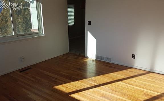 Beautiful raised ranch in a quiet neighborhood with unsurpassed views of Pikes Peak and the mountains from the living room. A large Country Kitchen with lots of natural light and tile floors. you have hardwood floors on the main level with some new carpet and some new paint. In addition you have front bedrooms, 2 inch fax blinds and a large basement bathroom with a family room and fourth bedroom. There is a private backyard, with a covered patio, and mature trees. Also there is a large over sized attached 1 car garage. Close to shopping and easy access to main through fares. No where else will you find a home with all this charm at this great price.