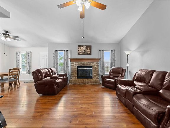 This charming 4 bedroom Vaulted Ranch home on quiet drive is a must see! Front entry foyer welcomes you into large great room with vaulted ceiling and gas fireplace. Open floorplan and luxury vinyl plank flooring throughout. Kitchen has quartz countertops, stainless steel appliances, oil rubbed bronze faucet, large breakfast room that walks out to composite deck and level backyard. Spacious primary bedroom suite with a walk-in closet, vaulted ceiling, updated bath with double sink, walk-in shower, and large soaking tub. Additional bedrooms are spacious and full hall bath is updated. Main level laundry room with 2023 LG WashTower washer/dryer to stay. Finished lower level features 4th bedroom w/ egress window, den, large rec area, wet bar, gas fire place & 1/2 bath. Spacious 2 car garage has bump out workbench area. AC, Furnace and Water Heater are 2018. NEW ROOF 2023, soffits, fascia, gutters w/ guards in 2024. Close to shopping, dining, and highways. Award winning Wentzville Schools.