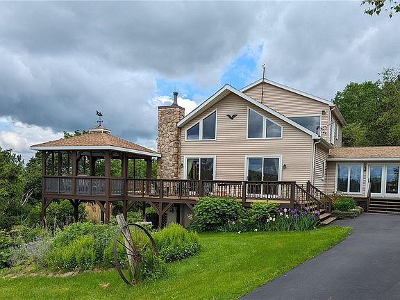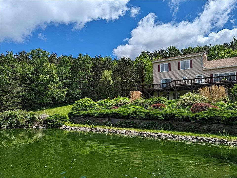 Magnificent property on 46.8 acs. Impressive landscaping w/ multiple perennial gardens, stone walls, large Koi pond w/ waterfall. Panoramic views, black top drive. Secluded but not remote. 3 bed, 3 bath 2164 sq ft home in pristine condition. Cathedral ceilings, window wall frames specular views. All bedrooms spacious 2 with walk in closets . 1st flr main suite. L/R, dining and kitchen all in great room w/ propane fireplace. 1st floor laundry and finished breezeway lead to oversized 2 gar garage with space for shop and mower,etc. Open loft area serves as great office that leads to 2 bedrooms and full bath. Full basement just waiting for your ideas. Walk out with large windows enabling living space to be added. Home has Superior Foundation and whole house Generac generator. Lot has great combination of wooded and open w/ impressive landscaping and Koi pond like no other.. Wrap deck with Gazebo that overlook pond also shows off amazing views. Open area is maintained by local farmer. Home is in absolute move in condition. Some furnishing available. Located 13 miles from Walton. Conveniently between Oneonta, Franklin and Walton