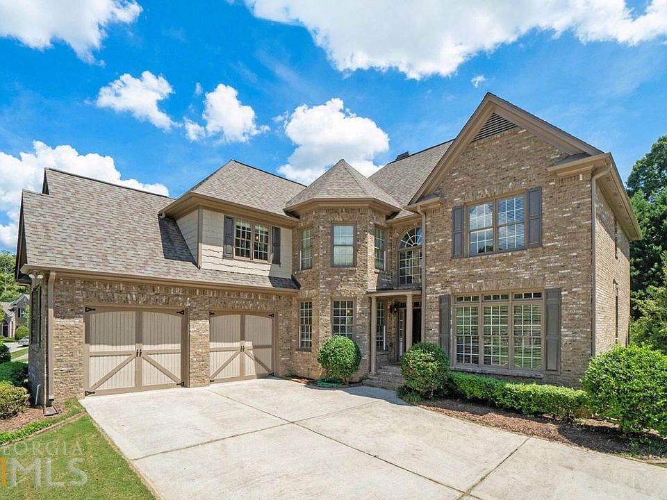 Welcome home to this stunning 3-sided brick home in East Cobb on a sprawling corner lot. Open the door with a view into a large living area with floor to ceiling bowed windows overlooking your backyard. Large Kitchen hosts a breakfast area and seating area with a fireplace, stainless steel appliances, granite counters, and a kitchen island. The main floor also contains a bedroom with ensuite full bathroom, a half bath, large dining area, and additional flex space. Continue upstairs to the Master Suite and ensuite with double vanities, large soaking tub, separate shower water closet, and 2 large walk-in closets. There are 3 additional bedrooms - 1 with an ensuite bathroom and 2 bedrooms connected with a Jack & Jill bathroom. There is a fully studded basement with interior and exterior entrances. The backyard is full of vegetation with mature apple, peach, cherry, and persimmon trees. BRAND NEW carpet in bedrooms and closets, new exterior paint, 5 yr old roof, new water heater, HVAC recently serviced - upstairs unit is less than 1 yr old & downstairs unit is 3 yrs old. Low annual HOA.