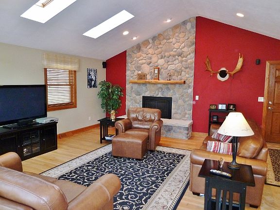 CUSTOM DESIGNED RANCH WITH A NEW GREAT ROOM OPEN FROM KITCHEN WITH FIREPLACE~SKYLIGHTS~HARDWOOD FLOORS~RECESSED LIGHTING. GREAT COOKS KITCHEN~SILESTONE~CABINETS GALORE~STAINLESS APPLIANCES AN ABSOLUTE DELIGHTFUL SPACE! A BONUS FINISHED LOWER LEVEL REC ROOM WITH FRANKLIN STOVE. BEDROOMS WITH HARDWOOD FLOORS. FROM YOUR GREAT ROOM STEP OUT TO YOUR CUSTOM PAVER PATIO WITH PLANTERS FOR YOUR GARDEN COLLECTION. ALL THIS SET ON AN OVER SIZED WOODED LOT~4 1/2 CAR GARAGE(2 ATTACHED AND 2.5 DETACHED) WOW!