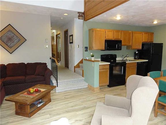 Great location with this 3 bedroom and loft townhome in The Highlands. This property sits at the end of the street with nothing but woods behind. The unit has just received new appliances, new flooring in living areas, fresh paint, selling fully furnished, has cathedral ceilings, wood burning stove for extra heat, large deck outback with storage shed and much more to see. Enjoy all that Hidden Valley Resort has to offer in this sharp property!