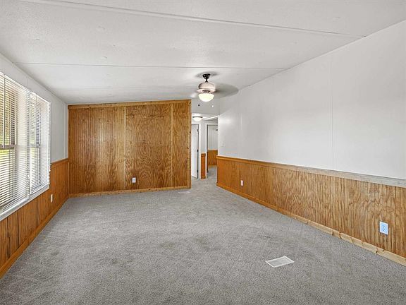 Three bedroom, two bath double wide manufactured home remodeled throughout on .6 acre lot. Improvements include: New windows, metal siding, metal roof, new pex plumbing, new HVAC, and flooring.