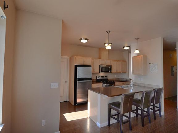 Built in 2010, this spacious upstairs unit is bright and modern. Just two blocks to campus means you don't have to drive or bike to class. Hardwood floors, stainless appliances, carpeted bedrooms, energy efficient. Three offstreet parking spaces provided. One year lease beginning July 1. Applications available at ducksplex.com