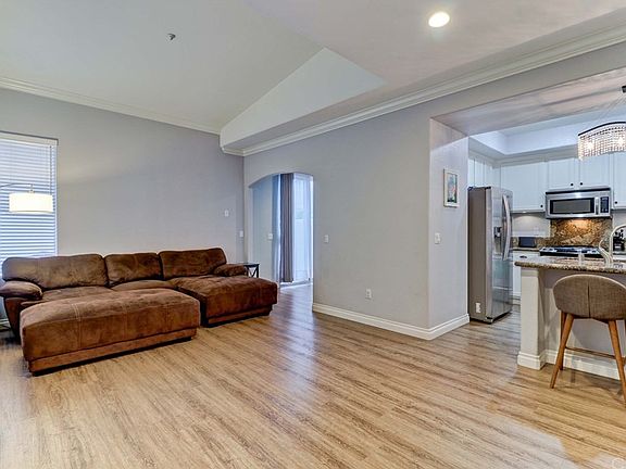 HOME SWEET HOME! Extending a warm welcome in the highly sought Altura gated community, this 3 bed, 2.5 bath home presents a lasting first impression that beckon you inside to a voluminous, light filled layout. Move-in ready, this completely detached condo is an entertainer's delight characterized by high ceilings, hardwood and vinyl waterproof floors. The stunning living room is accompanied by an elegant formal dining room that is a masterpiece of conversation and shows off with subtle grandeur with beautiful crown molding and wainscoting. Whip up culinary perfection in the elegant chef's kitchen equipped with premium stainless appliances, gleaming granite countertops, ambient chandelier lighting and breakfast bar for effortless serving. Extending your living, the beautiful enclosed side yard is enhanced with lush tropical landscaping and elegant flagstone. Each luxurious bath is complete with ceramic tiles, with two full baths on the main level and half bath downstairs. At the end of the day, retire to the decadent master suite; a destination of pure luxury with generous layout, soothing color palate, mirrored closet doors, and master bath with duel sinks. Coming and going is a breeze with attached 2-car garage with epoxy coated flooring and easy access to the freeways, shopping, school and Champions Sports Park. Wonderful community with low cost HOA fees that provide privileges of the resort style pool and Jacuzzi as well as the club house and gym. A must see!