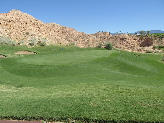 A must see well cared for home. This private setting with a view of the mountains, combined with a large patio is excellent for entertaining or just relaxing. The kitchen and dining area are perfect for watching the action out the patio door. fully landscaped yard has trees, grass, and desert surroundings. Over looking the number 4 green of the Canyons Golf course. Washer and dryer are included in the sale and S I Ds are paid in full.